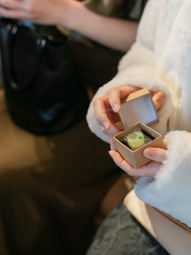 ゲストには内緒で箱の中にリングを隠し挙式の中でみんなで\箱オープン/