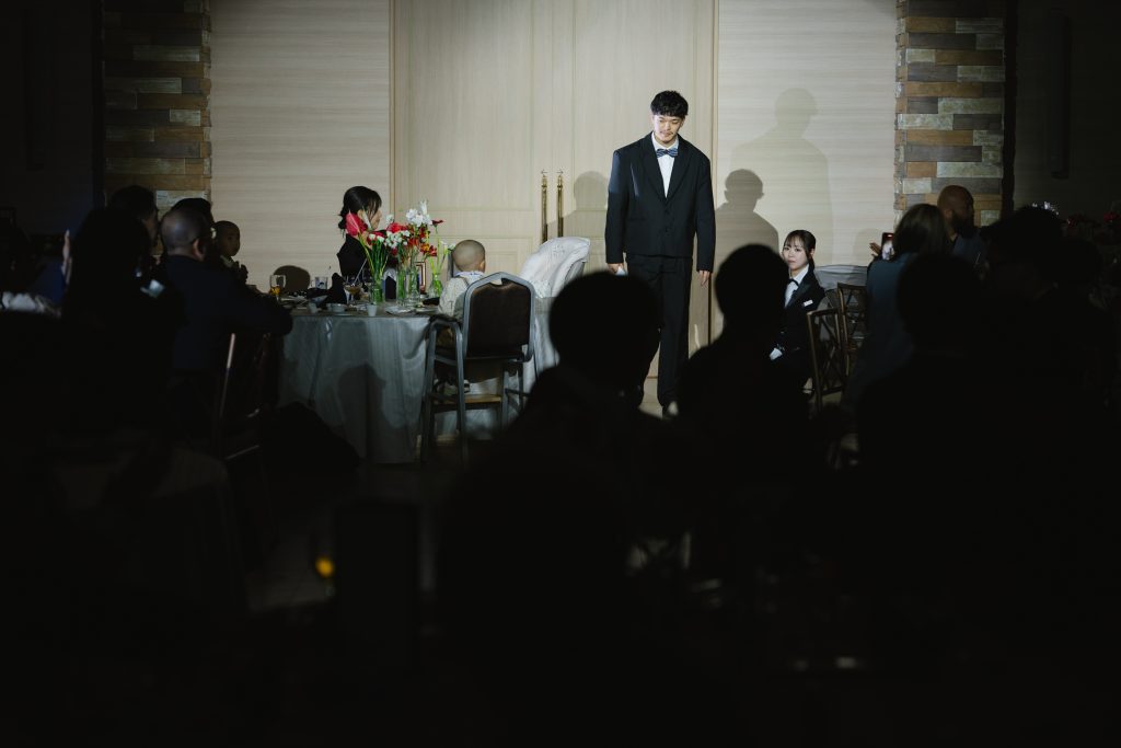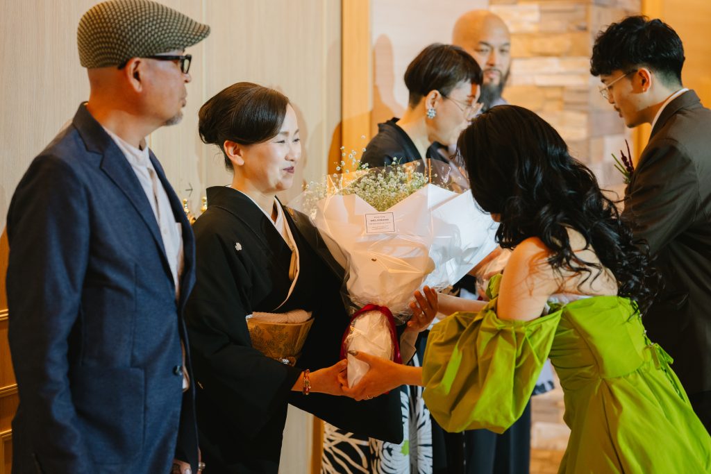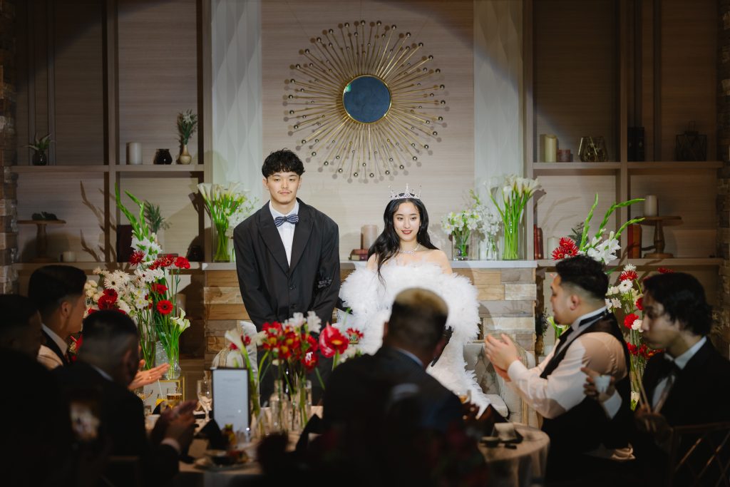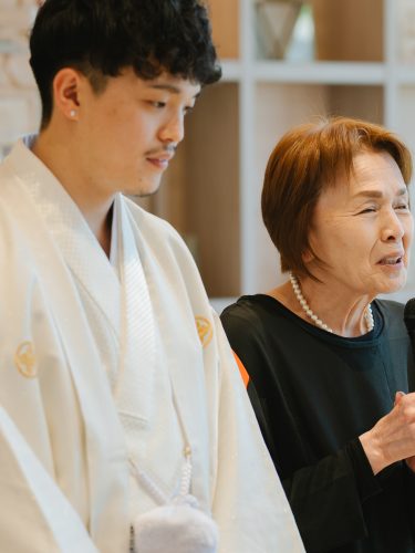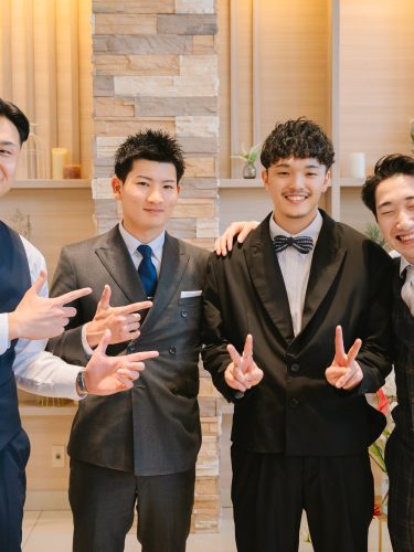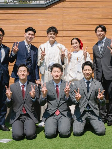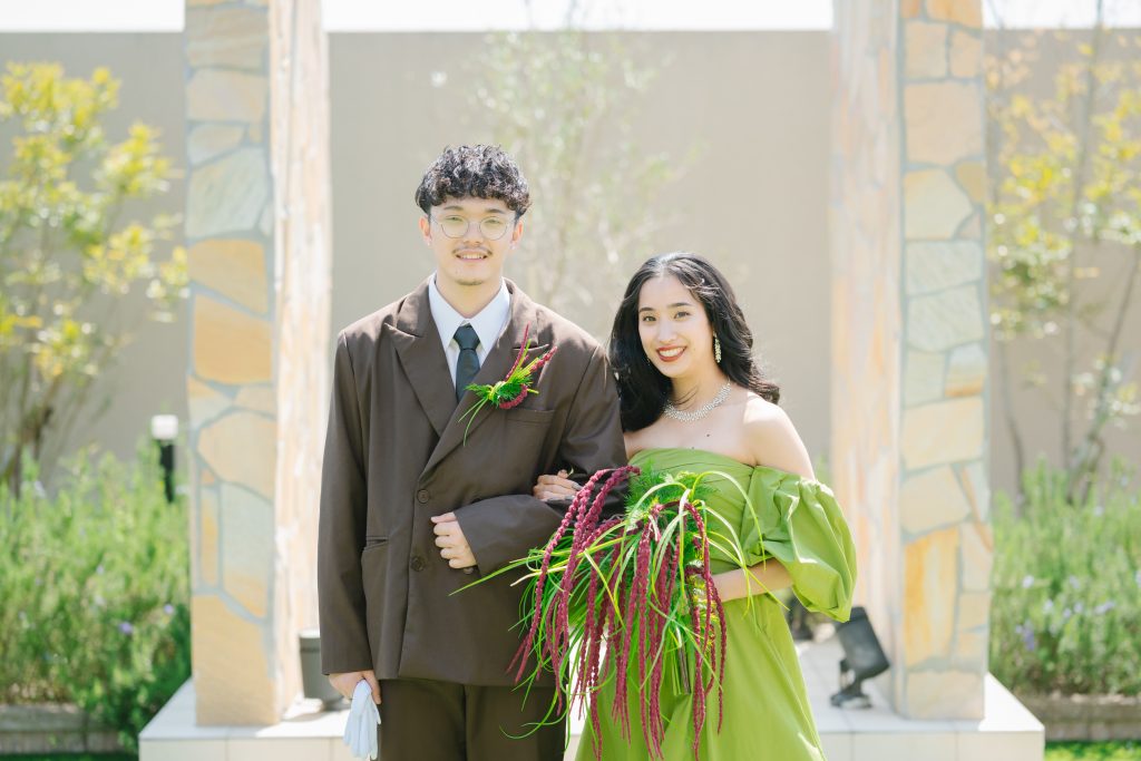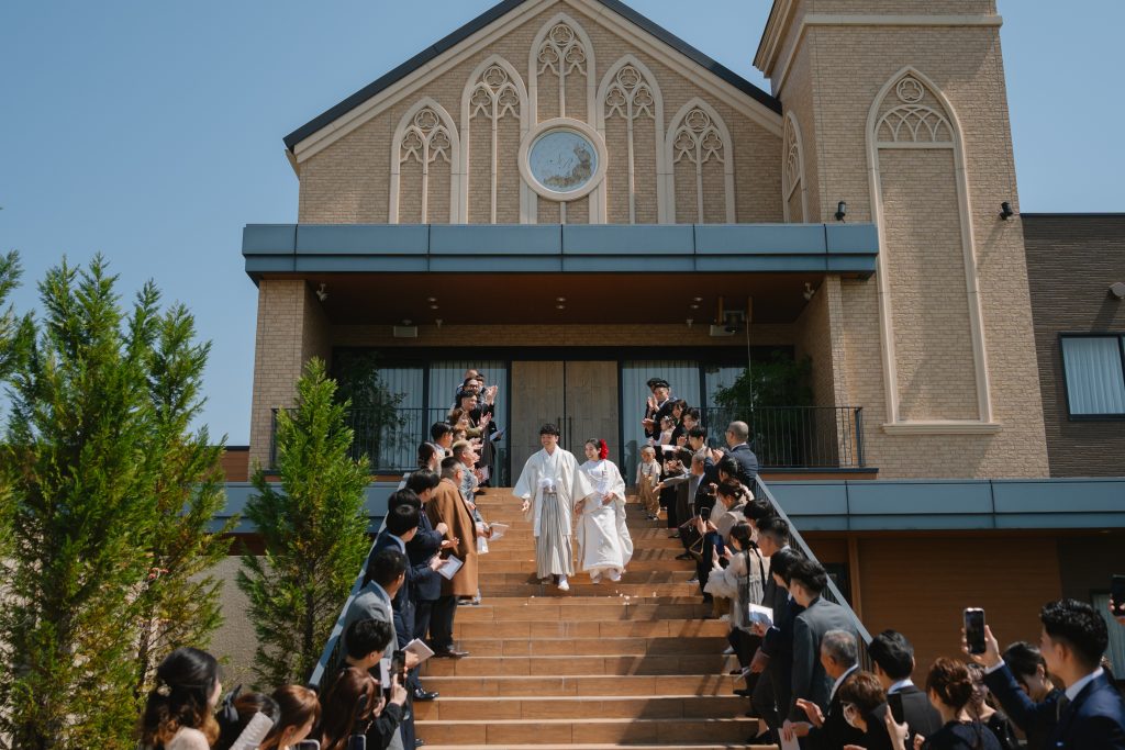 新郎様はご自前のスーツ、新婦様はウェディングドレスにお着替え