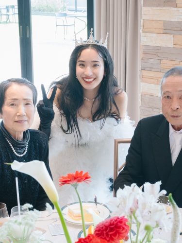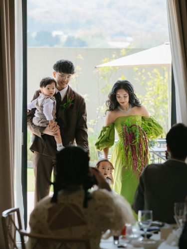 挙式がないので披露宴の登場でお父様にエスコートをいただきました