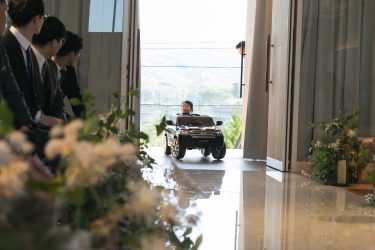 リングカーに乗って登場!
