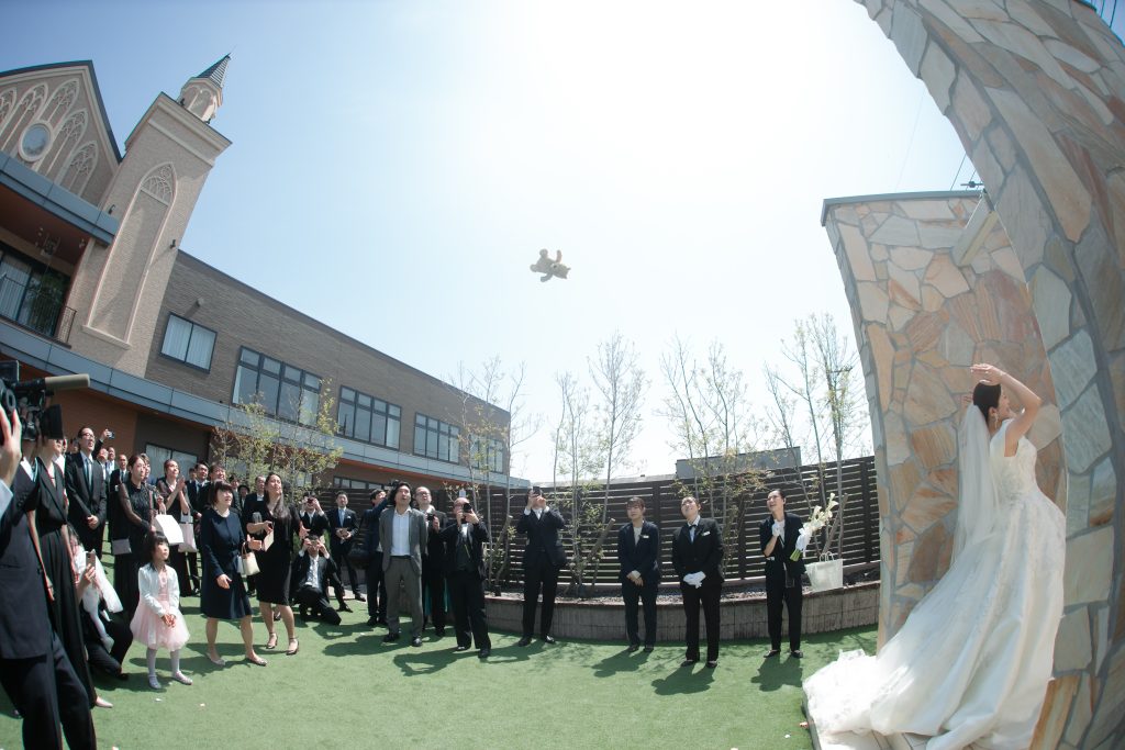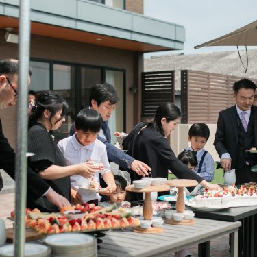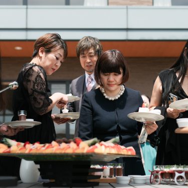 お色直し入場後はガーデンでデザートビュッフェのおもてなし!
