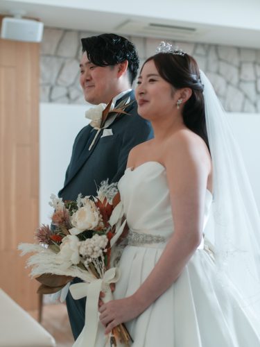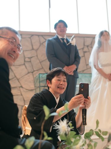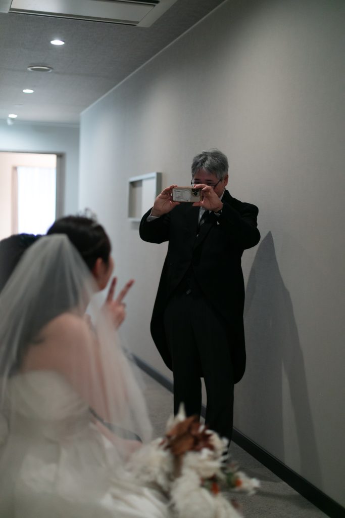 お父様が入場前のお2人の様子をしっかり納めてくれているようです!