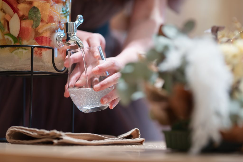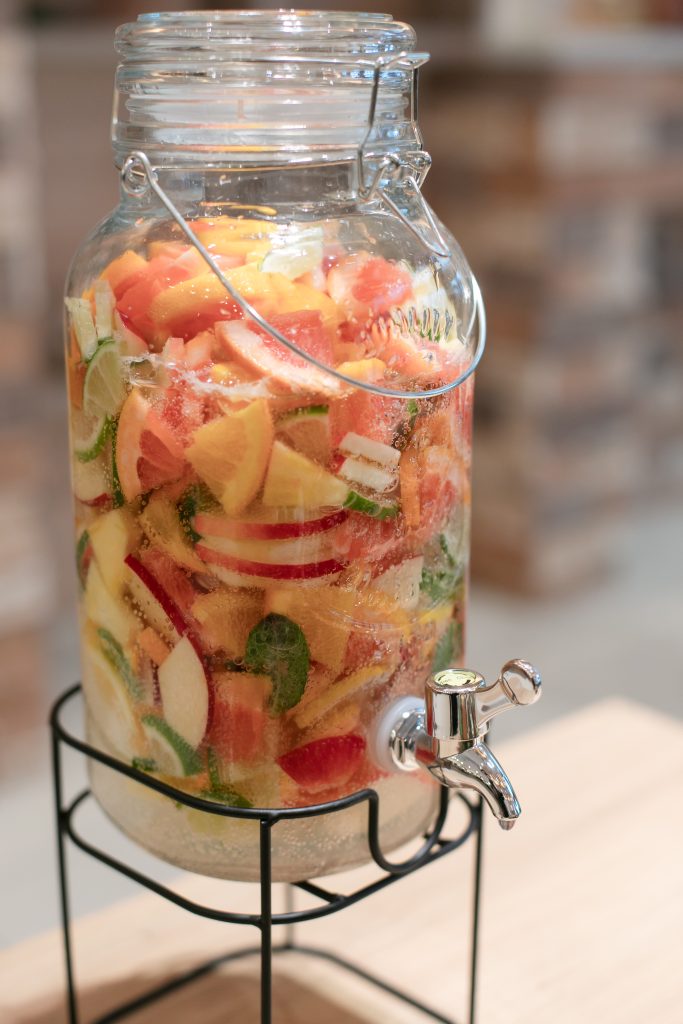 ゲストの方に入れて貰ったフルーツにお酒を注ぎ