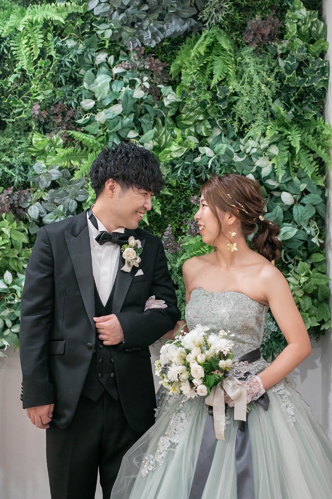 お色直しは鮮やかなグリーンのドレス